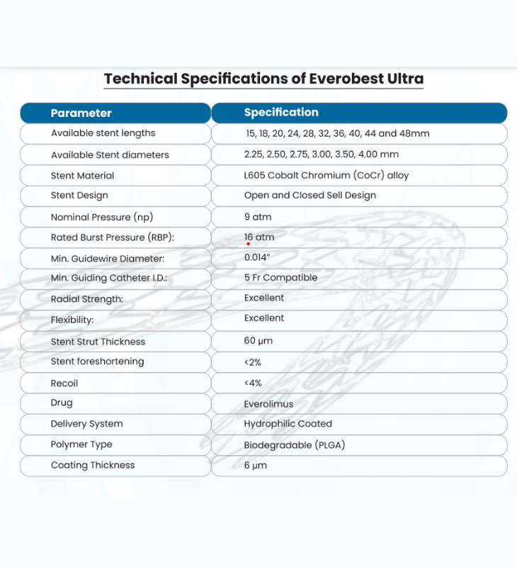Everobest ultra stent offers exceptional deliverability, pushability as well as an ultra-low profile and smoother crossing